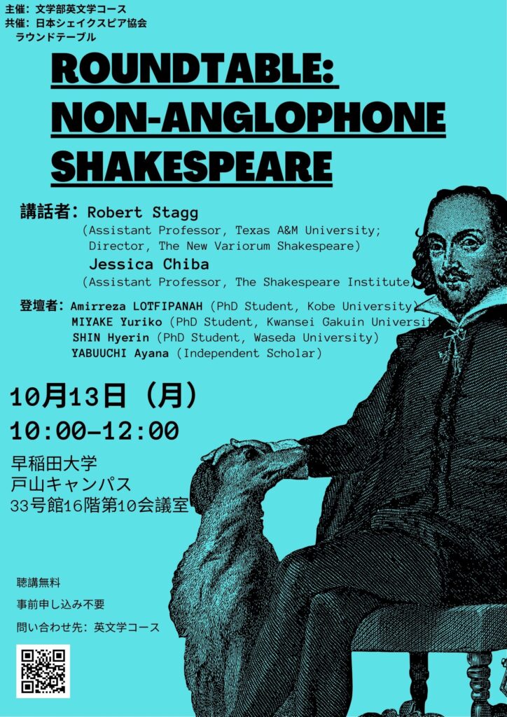 早稲田大学英文学コースの主催で、ラウンドテーブル Non-Anglophone Shakespearを開催します。詳細は以下の通りです。